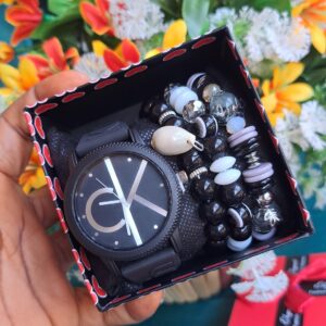 Beaded bracelet with wristwatch in box